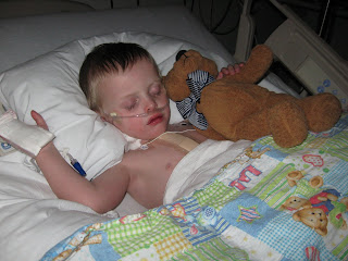 As you can tell, our little man is just not feeling well. They stopped the morphine all together and wanted to start him on Motrin. I voiced my concerns that he probably wouldn't take that just like all of the other meds. They decided to try Toradol instead and it is proving to be better for him on the pain front. He seems to have better pain control and his blood pressure is starting to come down. He is really struggling with taking ANY of his meds orally. I am not sure what they are going to do when he will either spit out or throw up his meds.